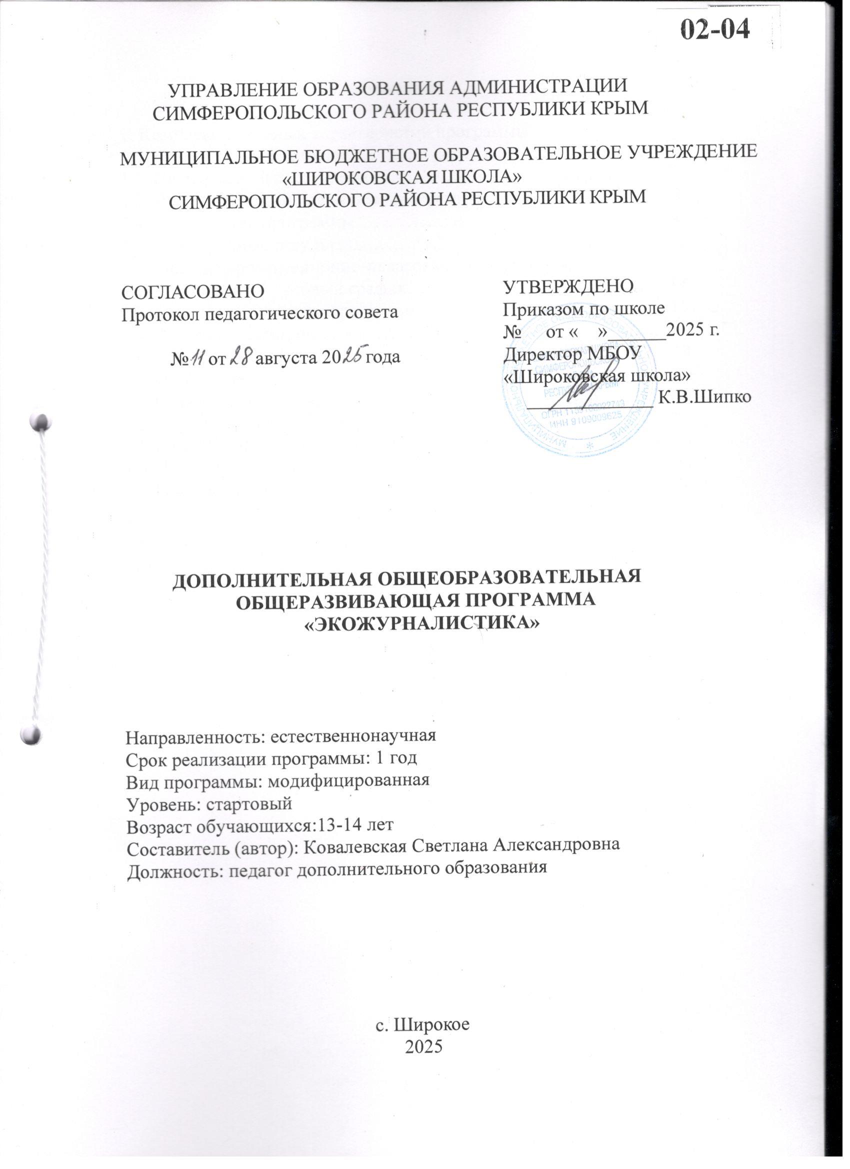 Муниципальное бюджетное общеобразовательное учреждение «Широковская школа» Симферопольского района Республики Крым
