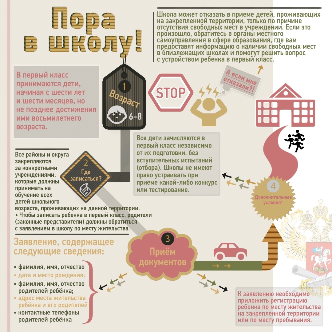 Приёму в первый класс подлежат дети, достигшие к 01 сентября 2026 года возраста не менее 6 лет 6 месяцев при отсутствии противопоказаний по состоянию здоровья, но не позже достижения возраста 8 лет.